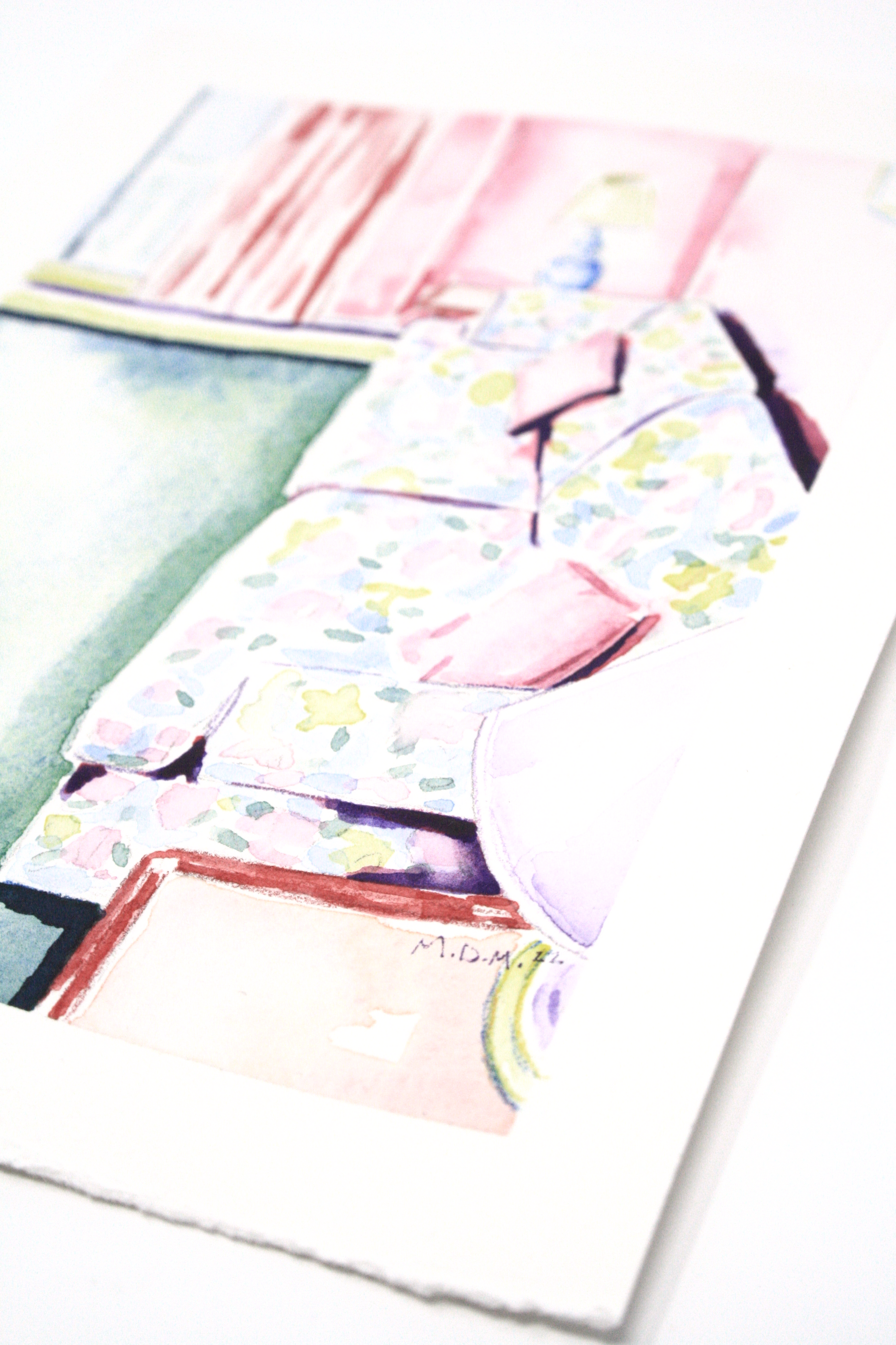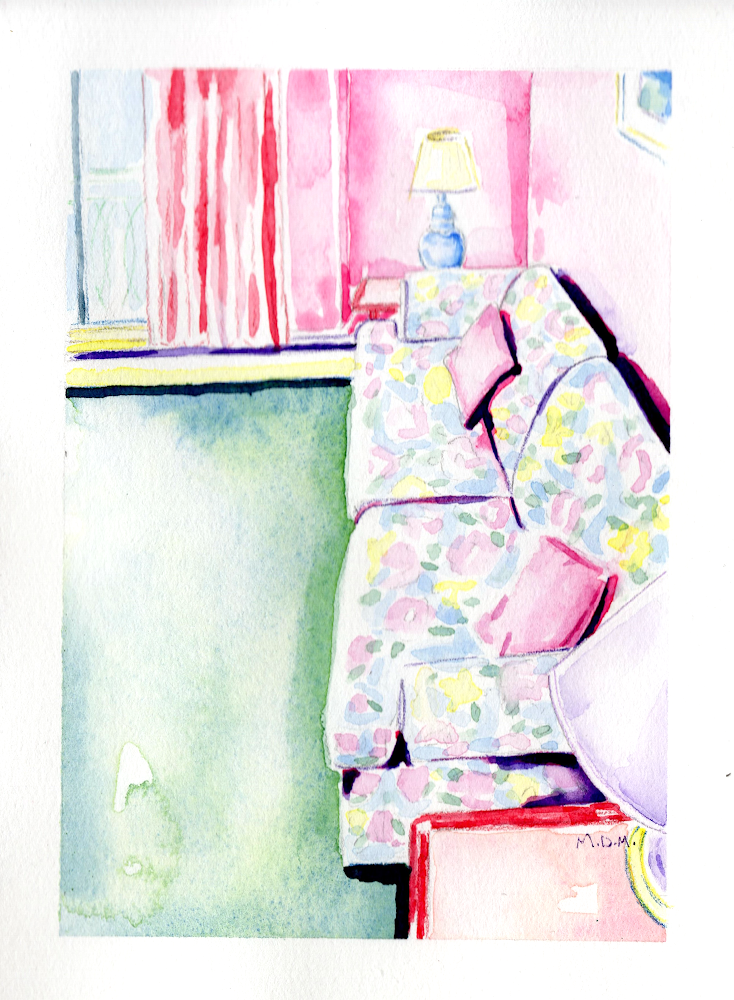 The reference photo for this was taken by a friend of mine who was staying at the Tropicana Hotel on Robson street in downtown Vancouver. I was instantly inspired by the rooms unique beauty and retro-vibe.